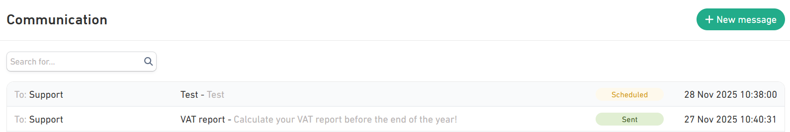 In the main Communication section you will have an overview of all your sent and scheduled messages.