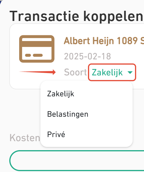 OF - Je kunt jouw transactie koppelen aan bestaande kosten.